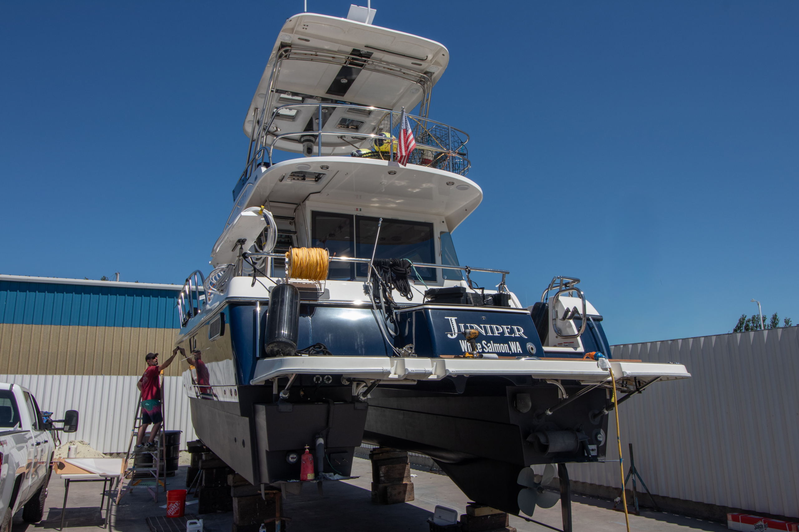 Aspen service can handle regular maintenance, systems upgrades, external engine component service and electronics upgrades. For internal engine work we have solid relationships with factory certified service providers. In house service is also important for our factory, as the direct feedback to our builder and purchasing teams provides a continuous improvement loop that helps make each Aspen better. Our service team takes care of about 90% of the Aspens in the Northwest and also does annual road trips to our east coast customers. We also offer a winter storage program for outside shrink wrapped boats, and a few inside dry heated storage boats as needed.