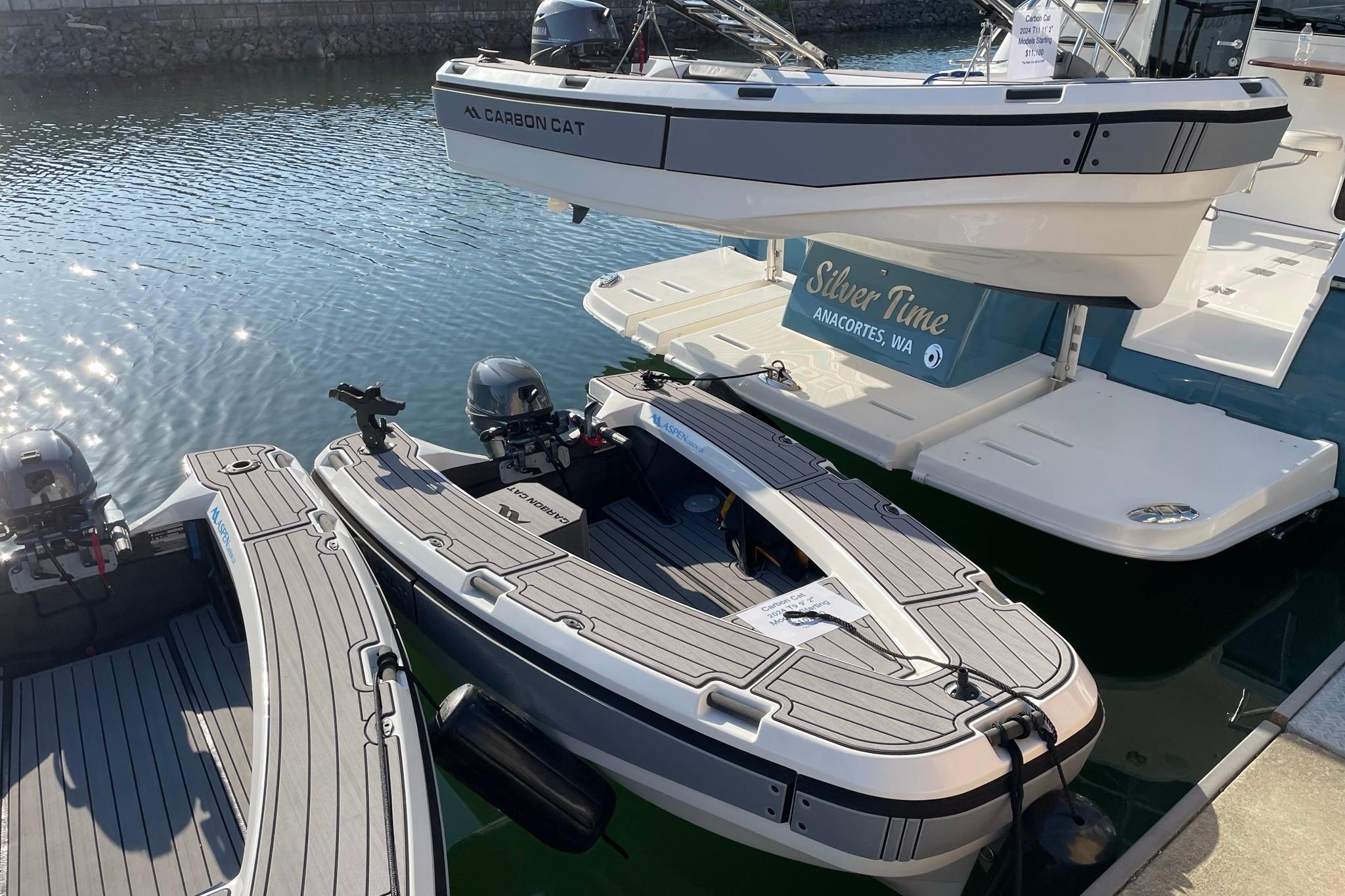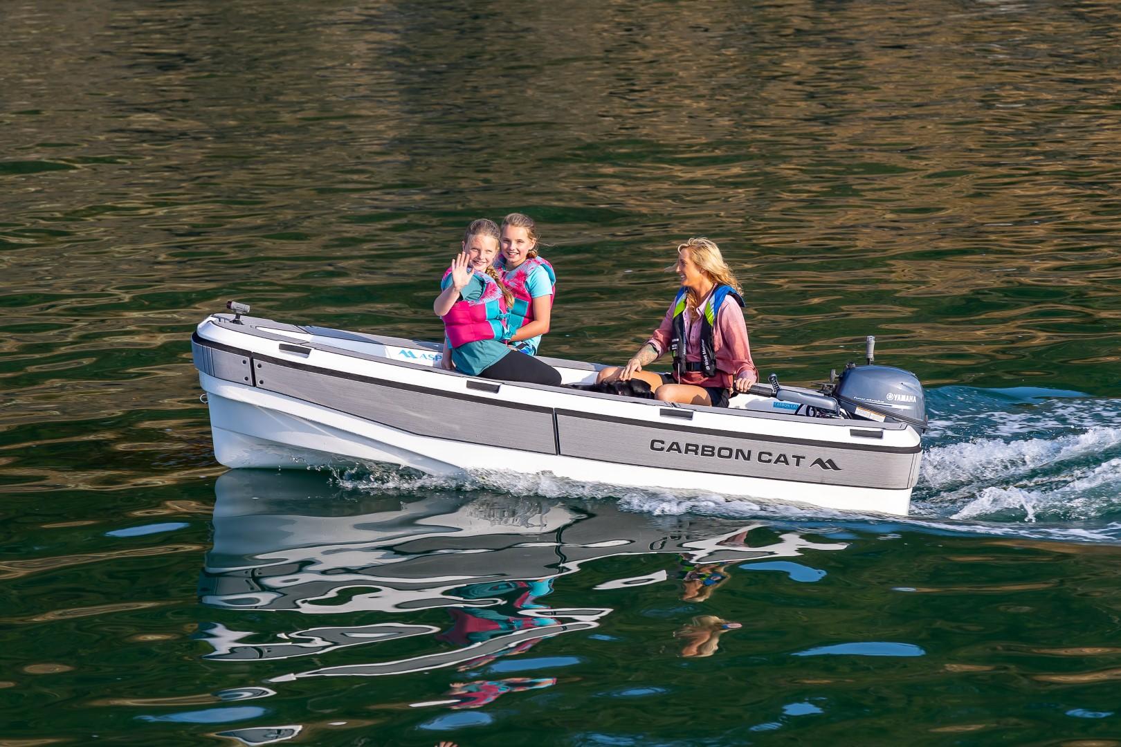 From the experienced boat building team at Aspen Power Catamarans comes a new series of lightweight rigid tenders that are unlike any boat built before. Carbon Cat’s unique patent in process hull form provides the stability of a catamaran or an inflatable RIB but utilizes lightweight carbon fiber construction making them fast, efficient and easy to handle.