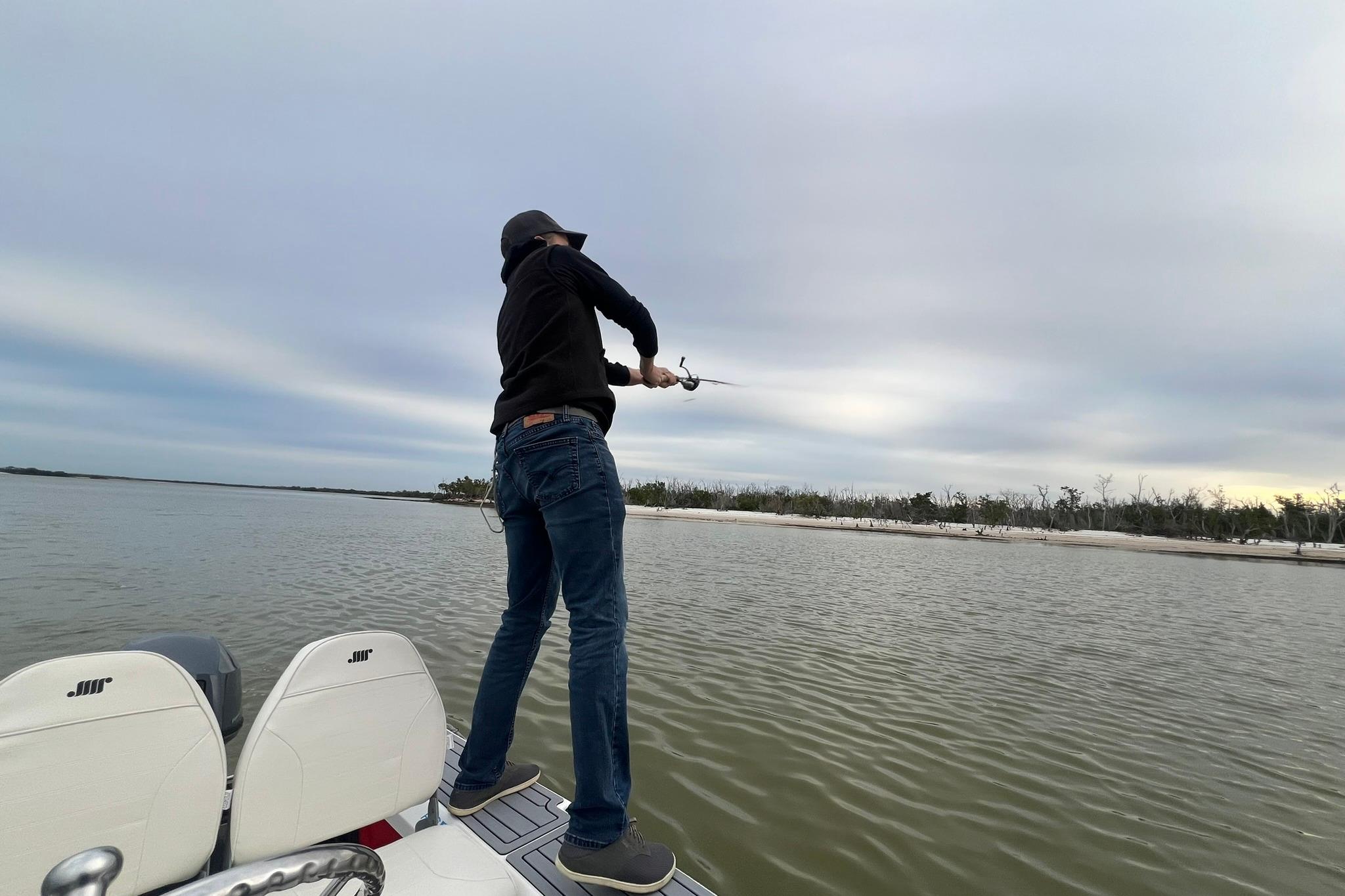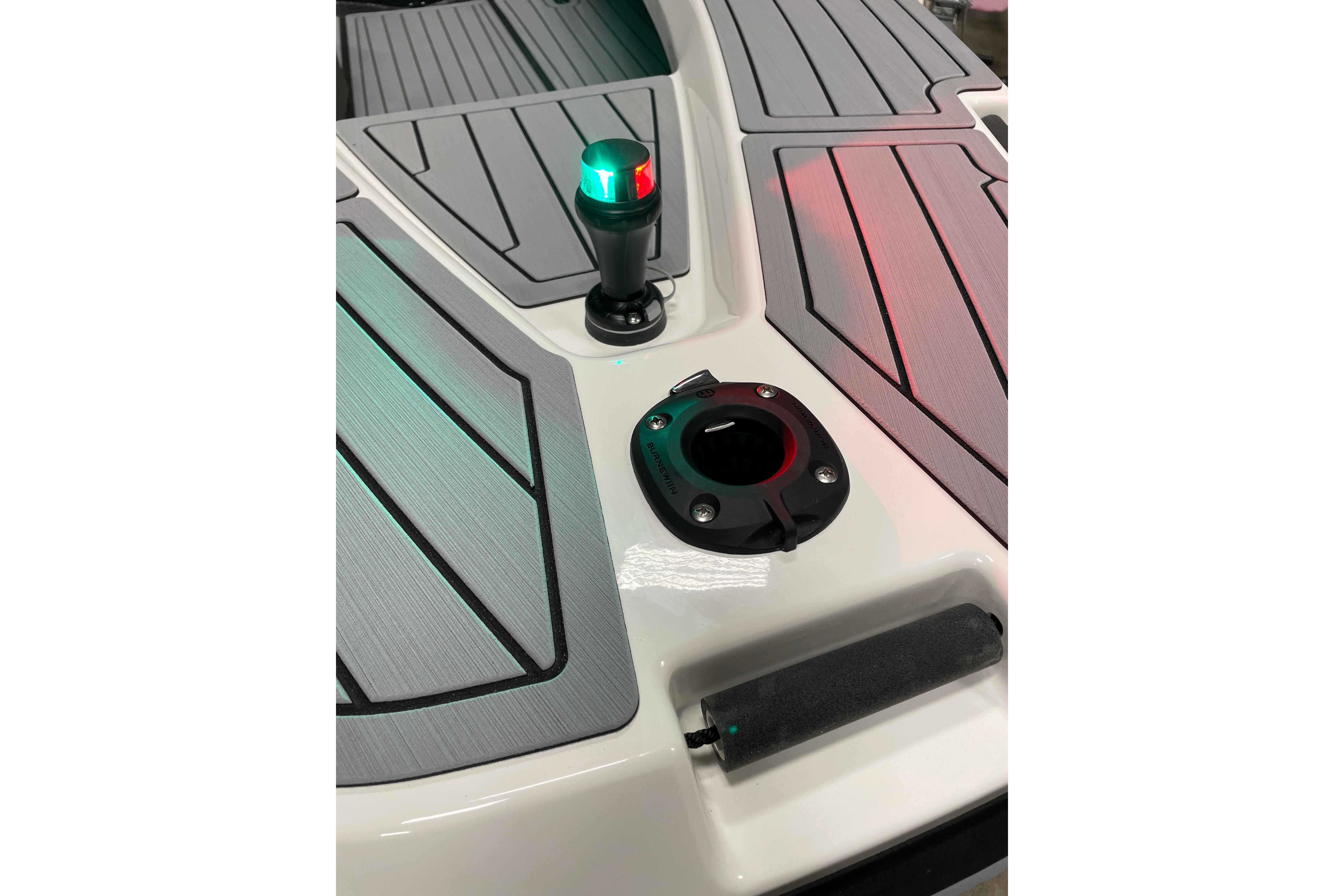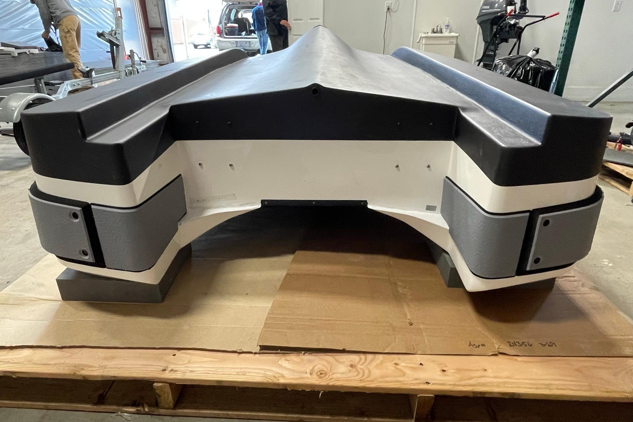 This hybrid design starts with a deep single-entry forefoot that smoothly cleaves through waves for improved tracking and spray resistance. The hull contour then gently widens aft and at the stern resembles a modified catamaran hull which provides lateral stability and lift.