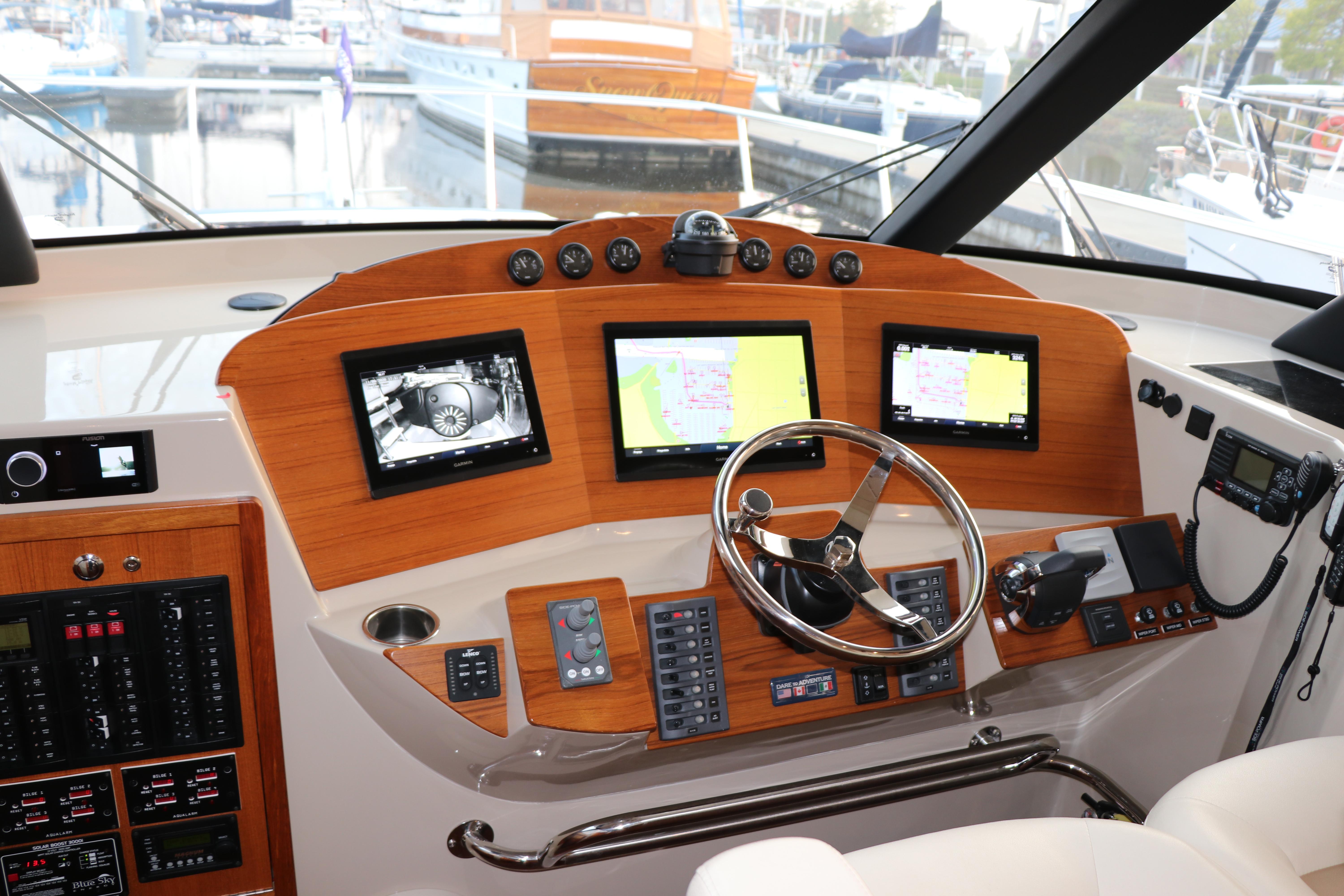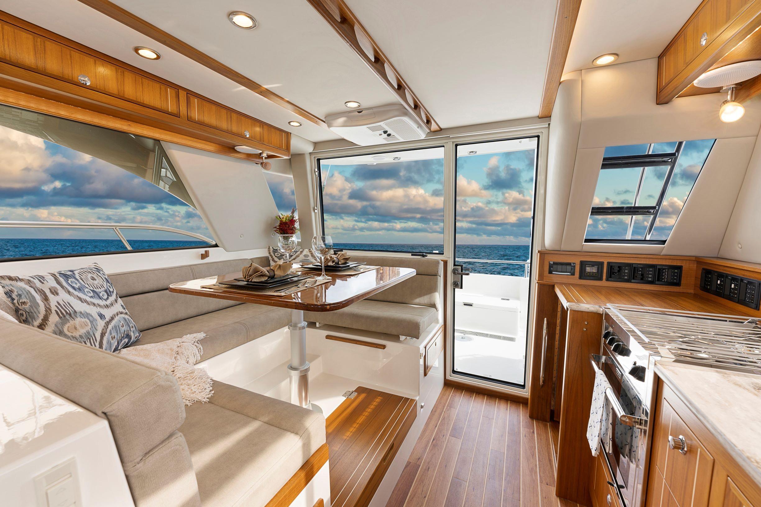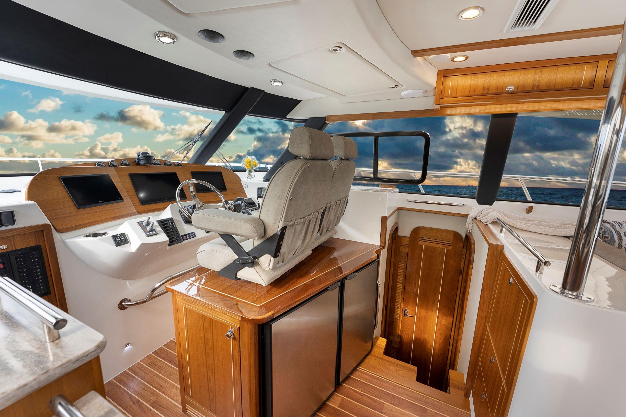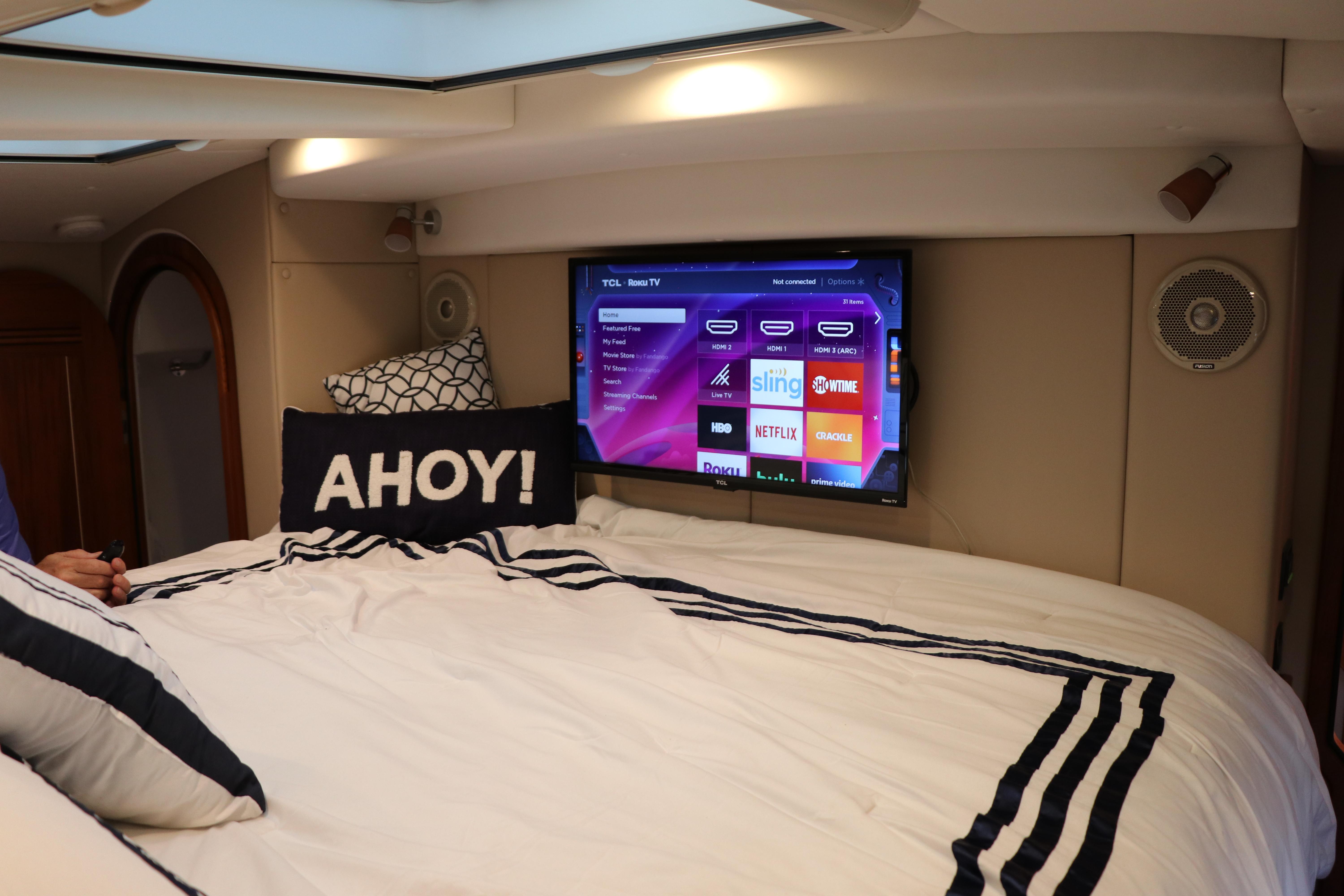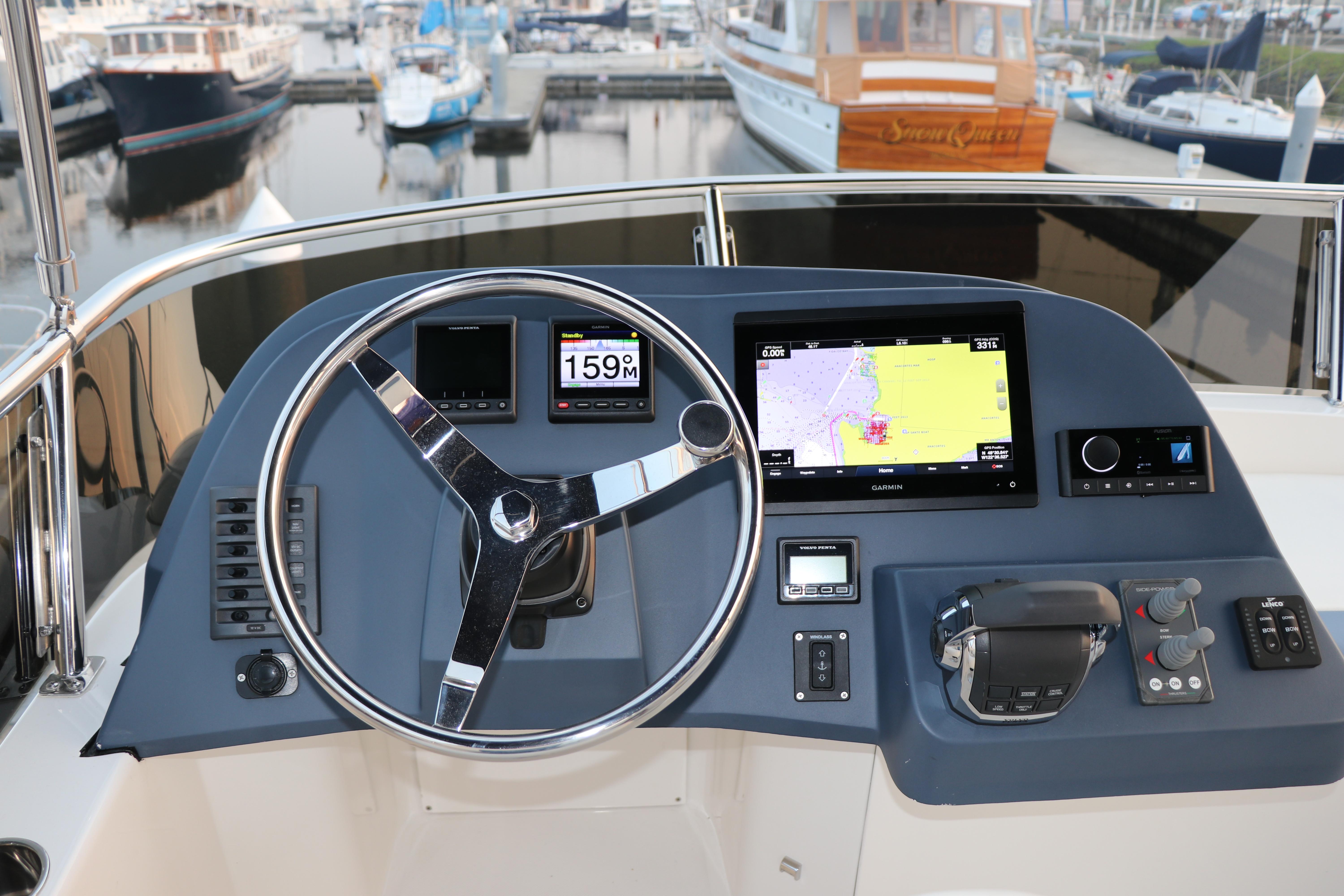 The modern design starts in the salon with an amazing open window layout that brings the grand outdoors right to you. Enjoy Mother Nature in all of her glory with a 360 degree view from every seat! Each hull has a first class head with a shower and large vanity. Below the dinette is a queen size guest stateroom, complete with hanging locker, portlights, and reading lights. Below the galley is a 2nd guest stateroom with a twin bed, portlights, and reading lights. Forward is the absolutely grand, full width, King Island Master stateroom; unheard of in a 40’er. This stateroom includes port & starboard hanging lockers, drawer sets, starboard vanity.